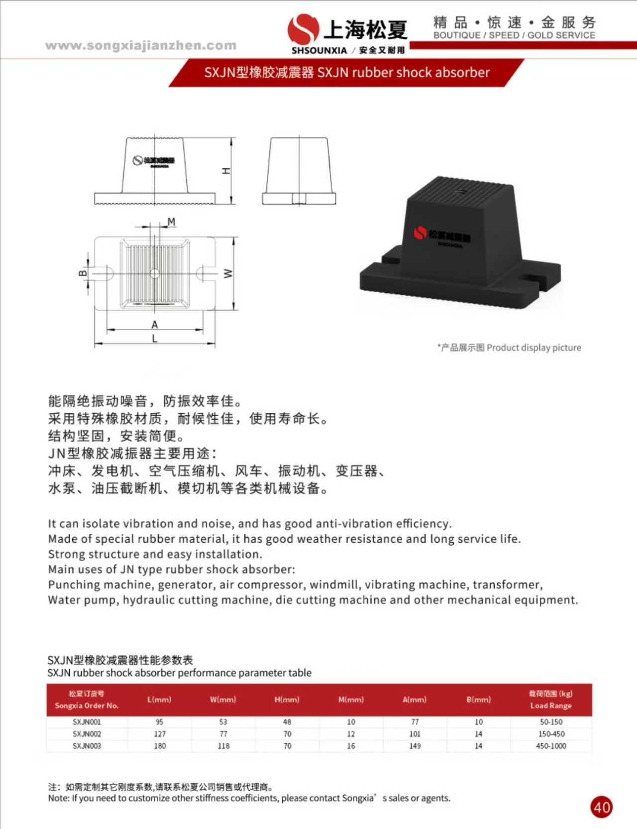 每種型號的橡膠減振器都有其獨特的設計和技術參數,選擇合適的減振器應基于具體的應用場景、負載條件、空間限制等因素進行綜合考慮。此外,隨著技術的發展,市場上可能會出現更多新型號和改進型的船用橡膠減振器,因此建議在選購時咨詢我們松夏專業工程師。